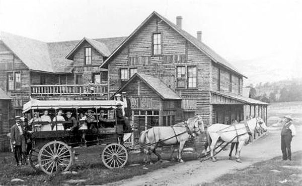 During the early 1900s, visitors often arrived by train and contracted a wagon or automobile to bring them into the valley. This travel was expensive, and visiting Estes Park was an elite activity. Beyond the Stanley Hotel, Sprague’s Lodge, and Stead’s Ranch, there were many other lodging facilities in the area, such as the Elkhorn, the Baldpate, the Moraine Park Lodge, the Horseshoe Inn, the Fall River Inn, and dozens more throughout Estes Park and nearby towns. During this time, Moraine Park was a functioning town with its own post office, school, liveries, eating establishments, and many lodging options. Near Grand Lake, there were more hotels.