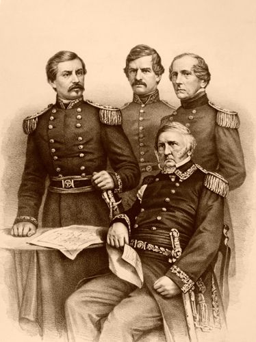 Union Generals Winfield Scott, George McClellan, Nathaniel Banks, and John Wool, by B.B. Russell, 1861.