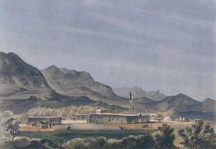 A military post called the “Post opposite El Paso” was established in 1849 on Coontz’s Rancho beside the settlement of Franklin, which later became Fort Bliss.