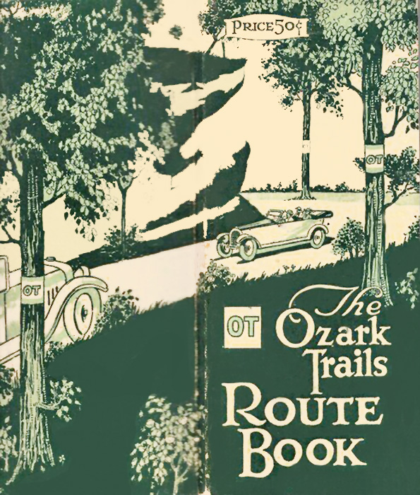 At first, the Ozark Trails Association marked the route by painting telephone poles green and white and then using diamond-shaped signs with a white background and a green “OT” between two green stripes. The association also distributed a guidebook with turn-by-turn directions, maps, photos, and town descriptions.