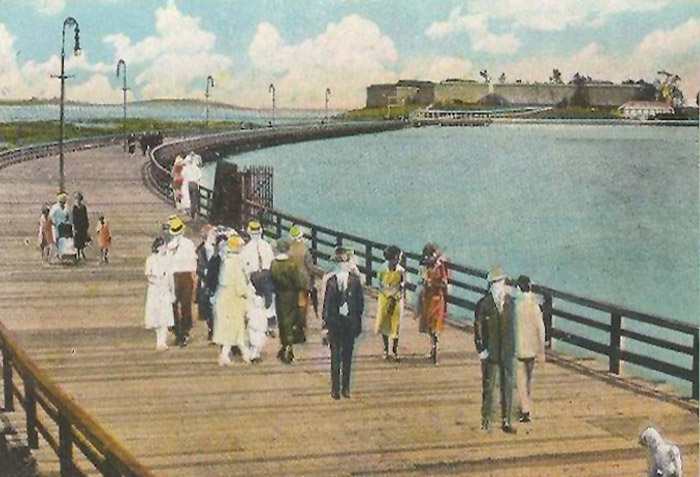 In 1959, the Metropolitan District Commission began constructing a walkway with an opening to control incoming and outgoing tides that now formed in Pleasure Bay. This walkway extends over two miles and has provided a delightful walk ever since.