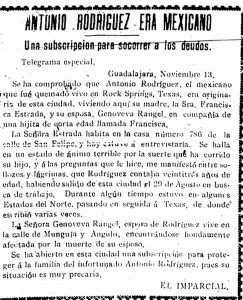 Widely publicized in the Mexican press, the lynching in Texas led to large anti-American demonstrations in Mexico City and Guadalajara. Coverage of the lynching and the reaction to it was wildly sensationalized. The newspapers at the capitol of Mexico demanded, ‘Where is the boasted Yankee civilization?'”
