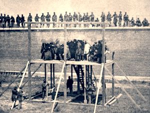 Legal hangings were performed regularly, the most public of which was the execution of the conspirators who were found guilty of killing Abraham Lincoln in 1865, just days after the close of the long and bloody Civil War. Mortally wounded by John Wilkes Booth’s bullet, Booth escaped but was shot down 12 days later in his hiding place.