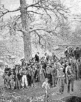 In June 1851, an Australian with a bad reputation became the first victim of San Francisco’s vigilance committee. Caught in stealing a safe, Jenkins, along with three other Australians from Sydney, were subjected to a mock trial, then marched to San Francisco’s Custom House, where they all had nooses put around their necks and were hanged on the spot. A second San Francisco “vigilance” committee was formed in 1856 and lynched two men, James P. Casey and Charles Cora. Casey had shot and killed a newspaper editor named James King, who had been bolding assaulting evildoers in his newspaper. Charles Cora, an Italian gambler, had shot and killed a U.S. marshal named Richardson in November 1855.