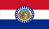 Missouri Flag – Centered on red, white, and blue fields is the Missouri state seal. A blue band encircles it with 24 stars representing the number of states in 1821. The stars in the inner circle have the same meaning. Two giant grizzly bears support the circular shield in the center, which has three parts: